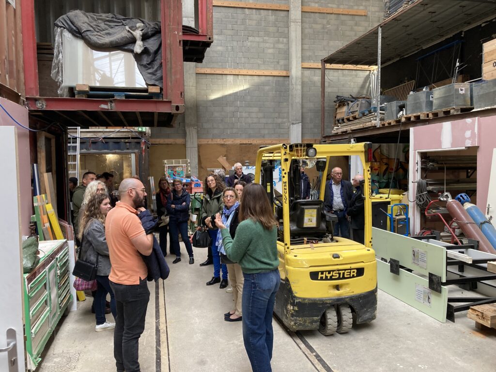 Les participants à cette visite ont découvert le lieu et son fonctionnement (activités, modèle économique…) mais ils ont aussi pu approfondir leurs connaissances sur les thèmes du réemploi, de la gestion des déchets du bâtiment et des déchets organiques, thèmes centraux du Hangar Zéro.